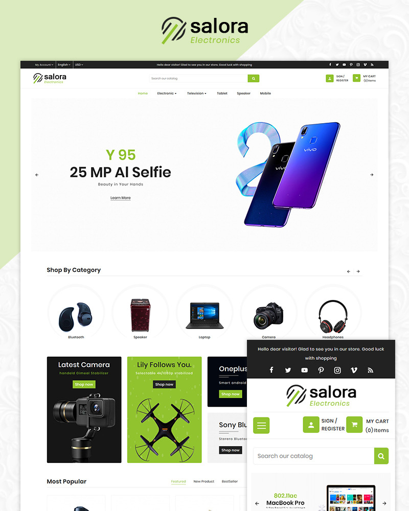 Salora Electronic Multi Store Responsive Bootstrap Opencart Theme Multi-Purpose Premium Responsive Theme.It is super for electronics, computers, furniture, 🕯