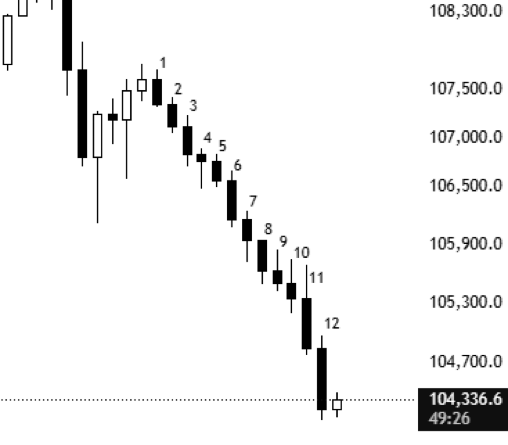 12 consecutive red candles leads to oversold