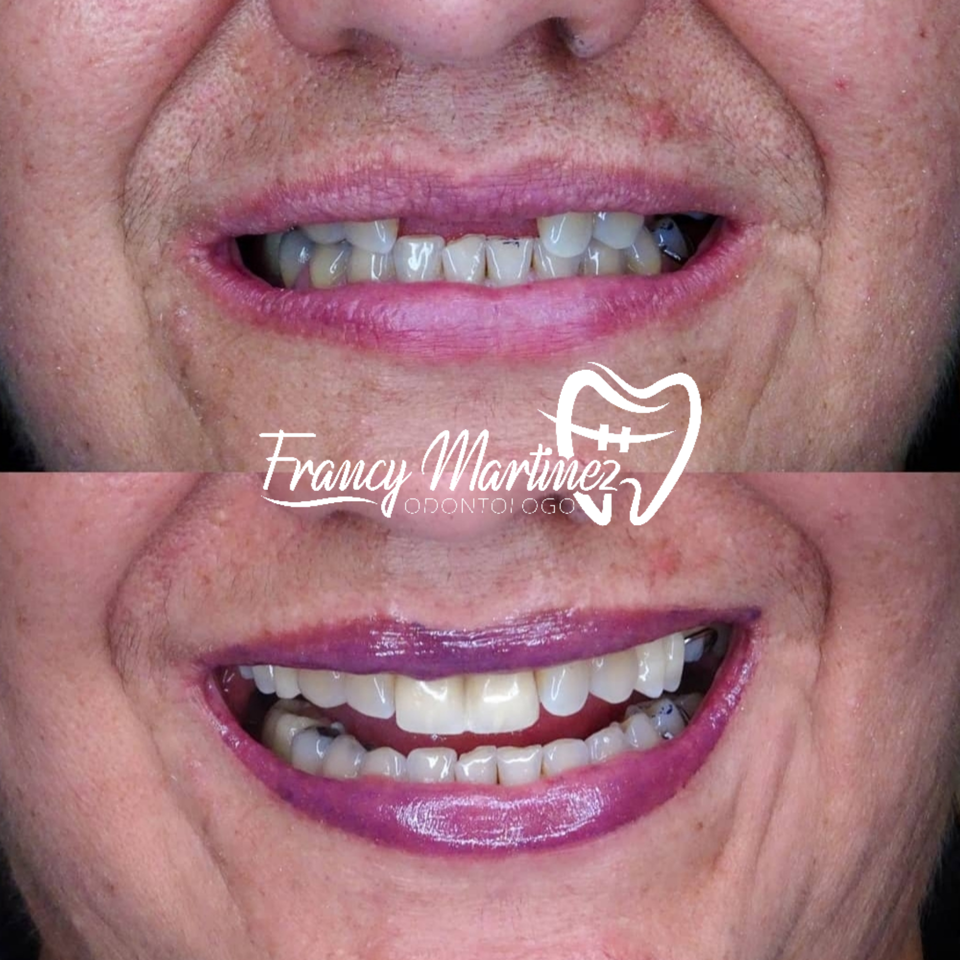 Una de mis mayores pasiones es devolver sonrisas a las personas que lo necesitan, en este caso, es una señora de 55años que había perdido sus dos dientes centrales (dientes delanteros) muy importantes para sonreír con comodidad, decidí realizar una rehabilitación para que dicha señora pudiese sonreír cómoda, me lleno de satisfacción al ver a la paciente llorar de alegría y agradecimiento al ver su nueva sonrisa ya que tenía muchos años sin esos dientes en boca, que les parece este cambio?