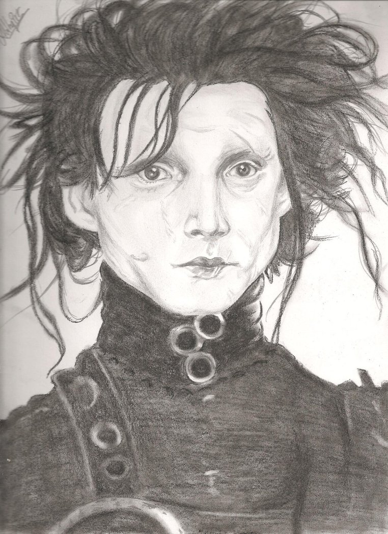 Otro de mis dibujos favoritos que solo requirió un lápiz para hacerlo, más un trocito de carbón que conseguí por ahí, fue el de Edward Manosdetijeras que verán a continuación: