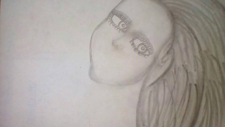 Después de eso, lo que empece a dibujar fueron sombras a la cara, y dibujar mas el cabello, le pinte las pestañas y un poco la nariz