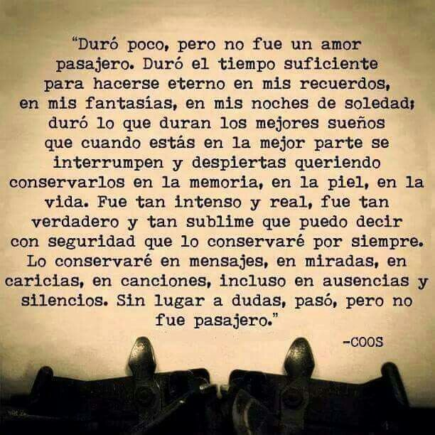Siempre ama con el corazón, no les de miedo enamorarse, a la vez es dificil no ser amado, no ser correspondido y fracazar con tu pareja, el amor llega en el momento menos esperado pero a donde quiero llegar es que perder a esa persona en vida la cual amaste y fallece, a la que estregaste tu todo y por la que aun llegan mil cosas a tu mente y piensas que ya no la verá, ya no será la misma mano que te toque, ya no seran los mismo labios que te besen ya no será esa persona la cual te ame como te amó, son mil cosas que pasan por tu mente, es dificil perder a ese amor sin haber terminado la relación, sin haber dicho como a todos nos pasa que te dicen o te preguntas si ya no funciona?, es momento de separarnos?, hay mil formas de decir eso pero que esa persona se valla sin haberte dicho adiós, sin haberte dicho porque se fue es algo que queda en el aire, es algo que no se sabe si no hasta ese momento de nuestra partida de esta vida a otra si es que la hay.