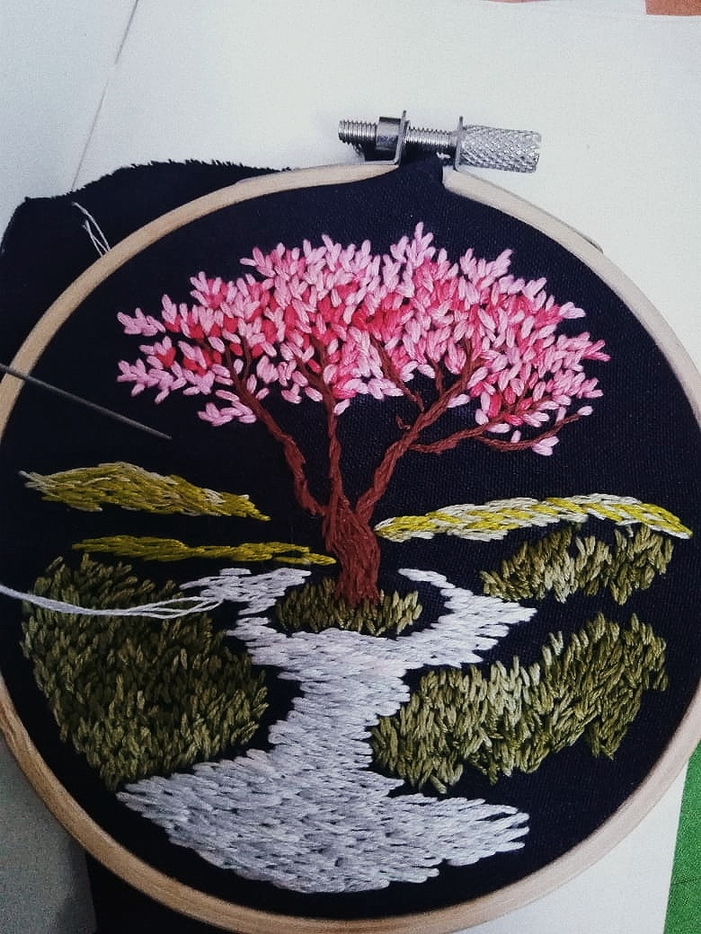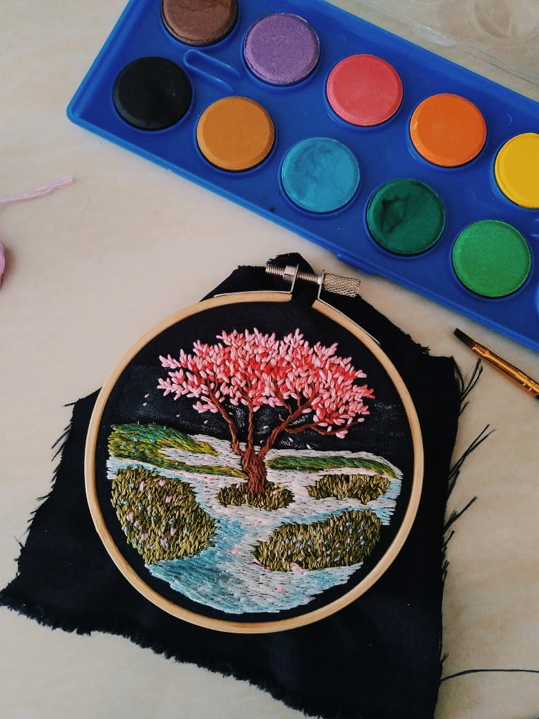 Desde hace un tiempo tenía deseos de empezar a realizar bordados nocturnos, así que un viernes en la noche mientras preparaba chocolate caliente, pensé que era el momento.