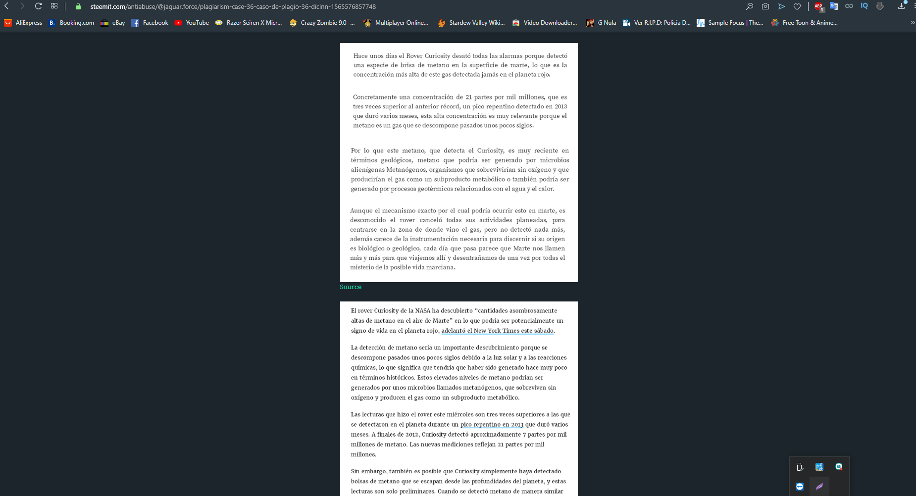 se puede leer claramente que el post que reportamos por plagio es: