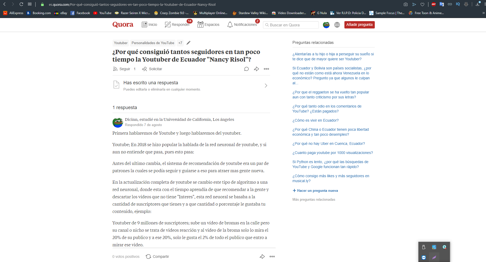 El me cerro ese post porque sale el mismo comentario en Quora, (Una plataforma donde se pregunta de lo que sea) y si se dan cuenta el que responde es Dicinn. la misma persona que yo(ES POR QUE SOY YO) nunca estoy copiando ni haciendo plageo, como el lo demuestra: