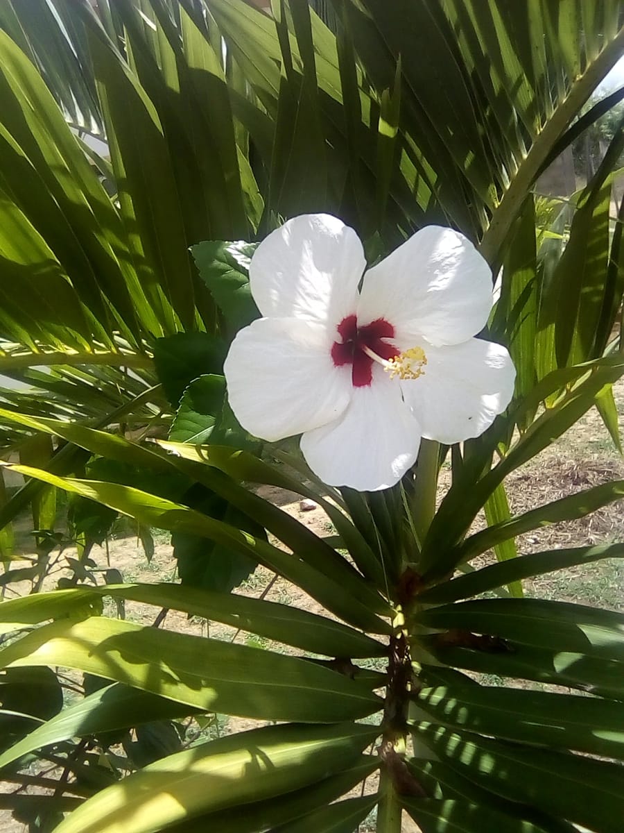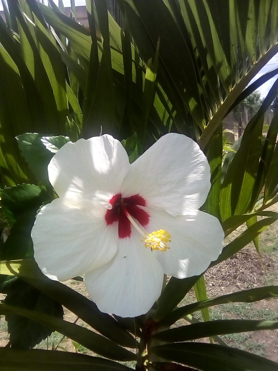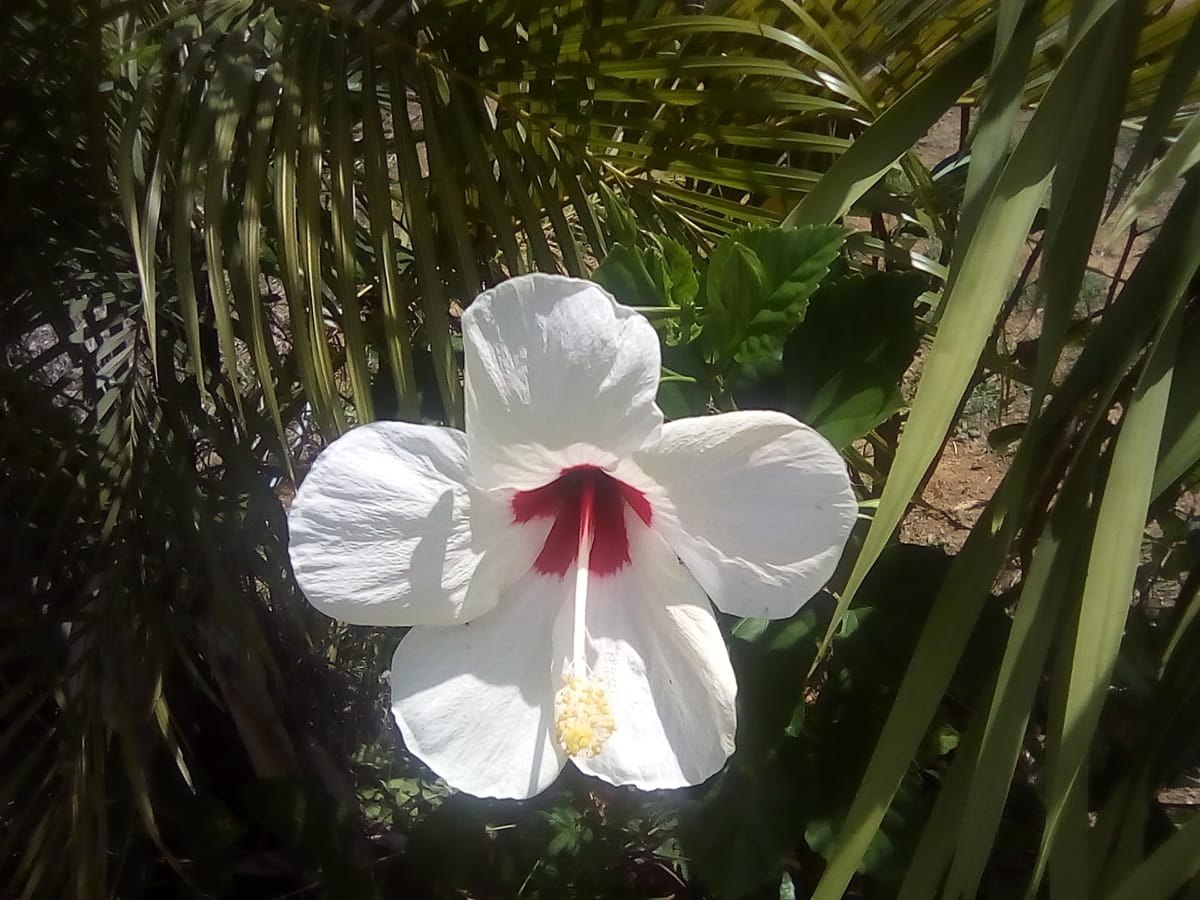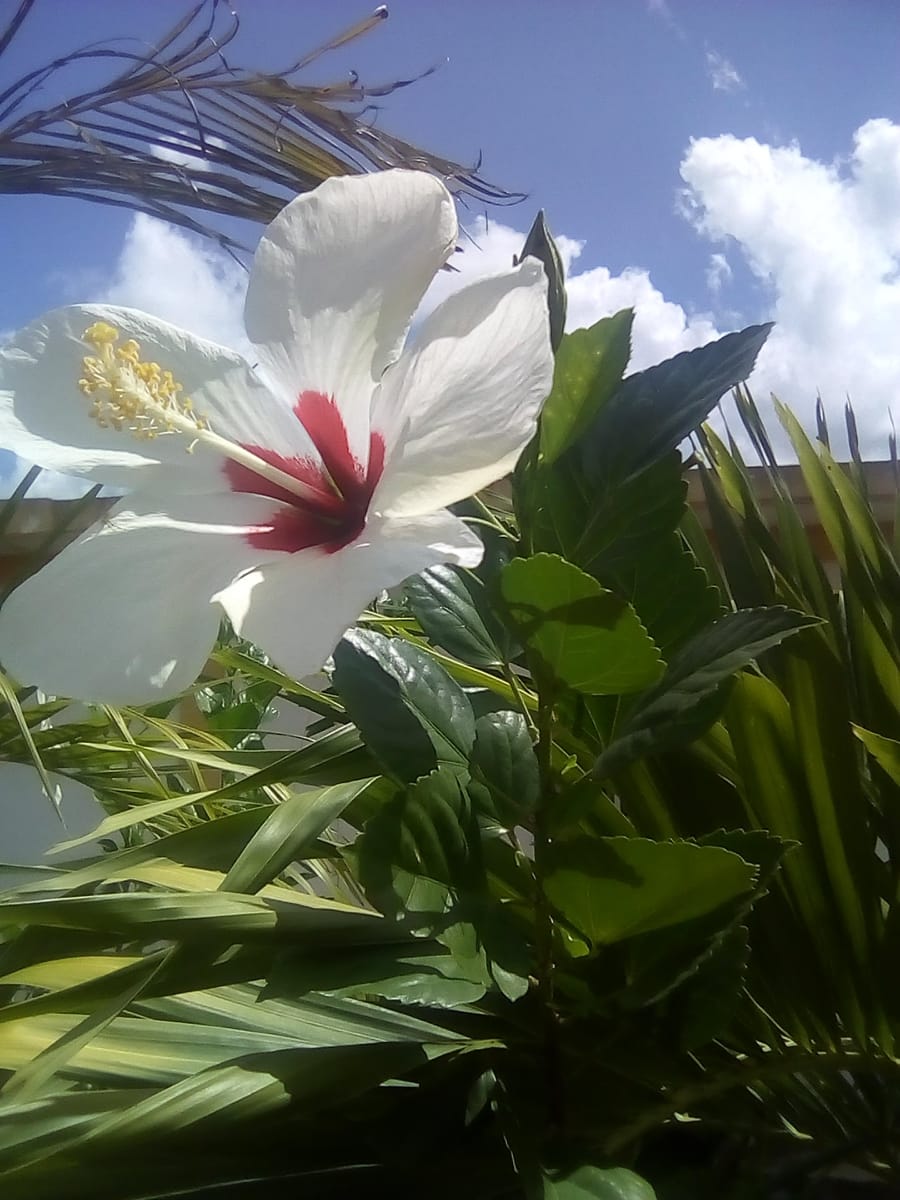 La cayena blanca es una hermosa flor con el centro rojo , que representa la paz y la tranquilidad del Jardín, es una flor que con su elegancia resalta entre las demás flores representa para mi la paz espiritual y armonía en familia , tienes muchos beneficios medicinales y la utilizan para el cuidado del cabello etc.