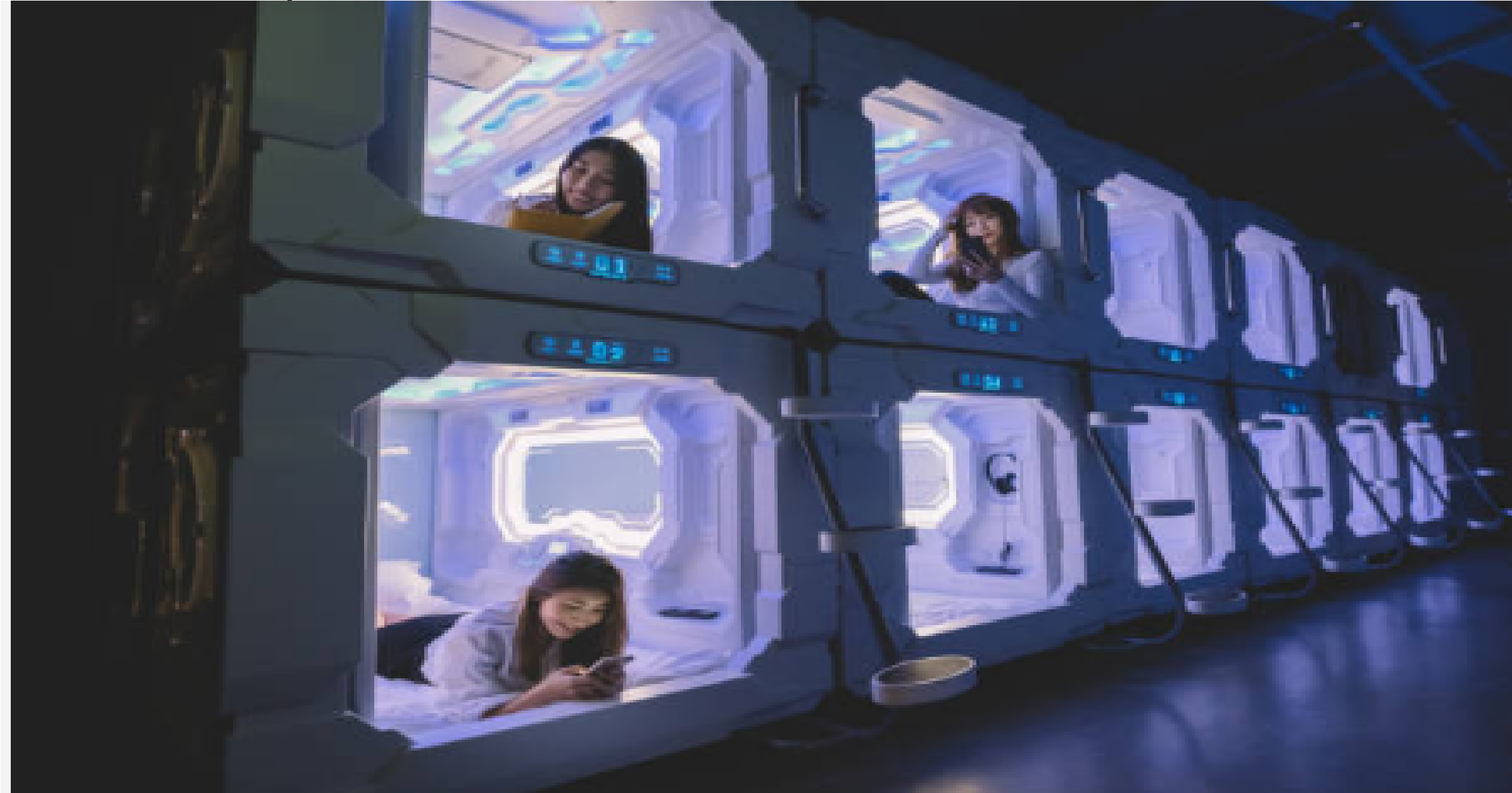 Se han convertido en el último grito del alojamiento en el continente asiático sobre todo en Japón. Debido a su gran población pero poco espacio donde la modalidad de construir hacia arriba y no hacia los lados, realmente son cómodas, económicas y silenciosas. Los baños y espacios son comunes que se han vuelto muy rentable para comenzar a implementarse en los aeropuertos ¡cero claustrofóbicos!