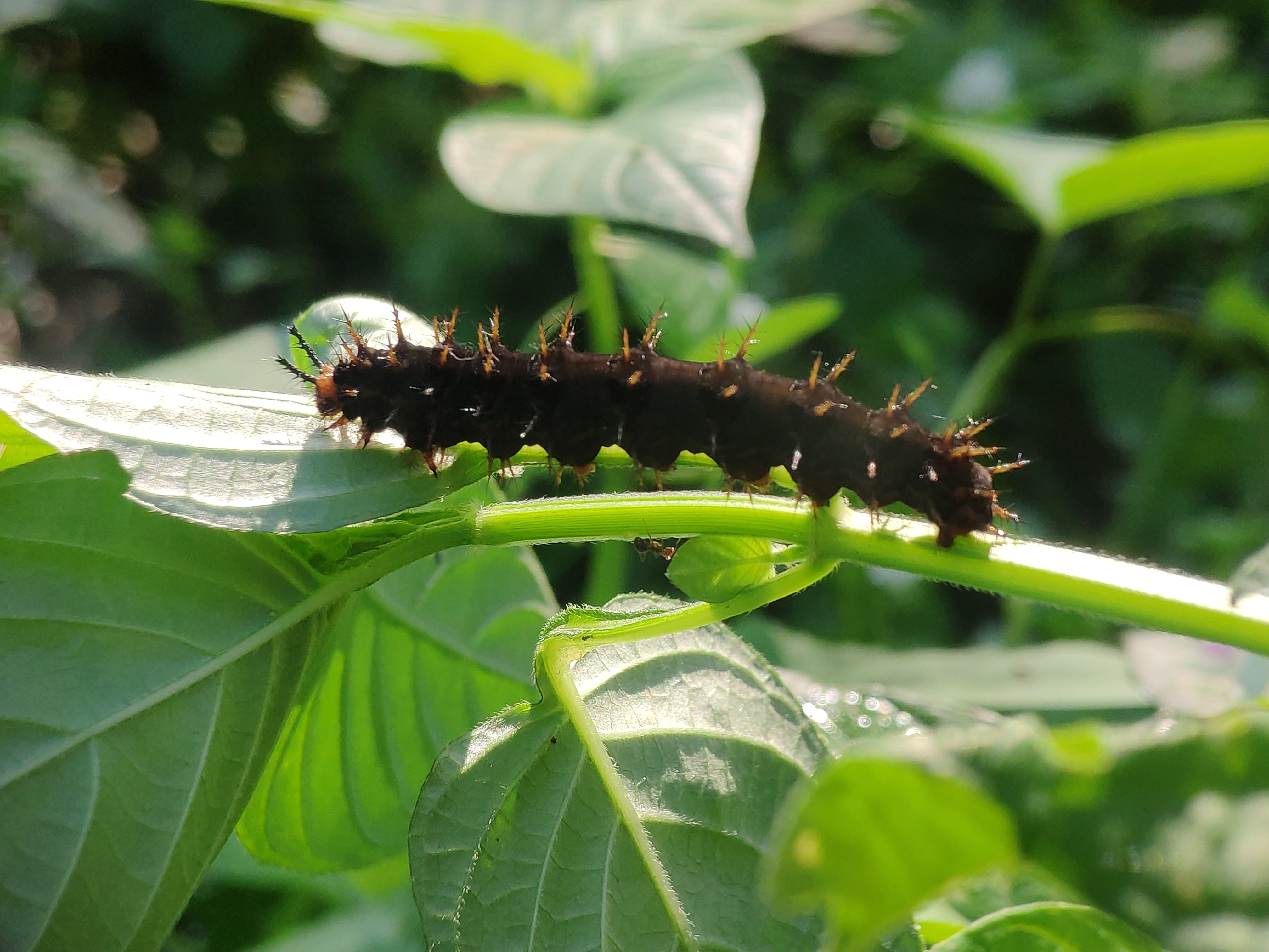 La primera es que esta oruga tiene una forma terrible, donde la oruga no tiene mucho pelo, pero en su cuerpo hay pelos como espinas por lo que cualquier cosa que la toque se convertirá en protector del cuerpo.