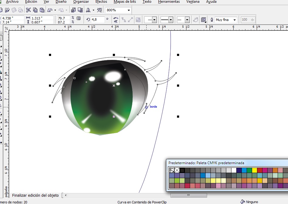 Herramienta Sombra interactiva va tomando forma el ojo.