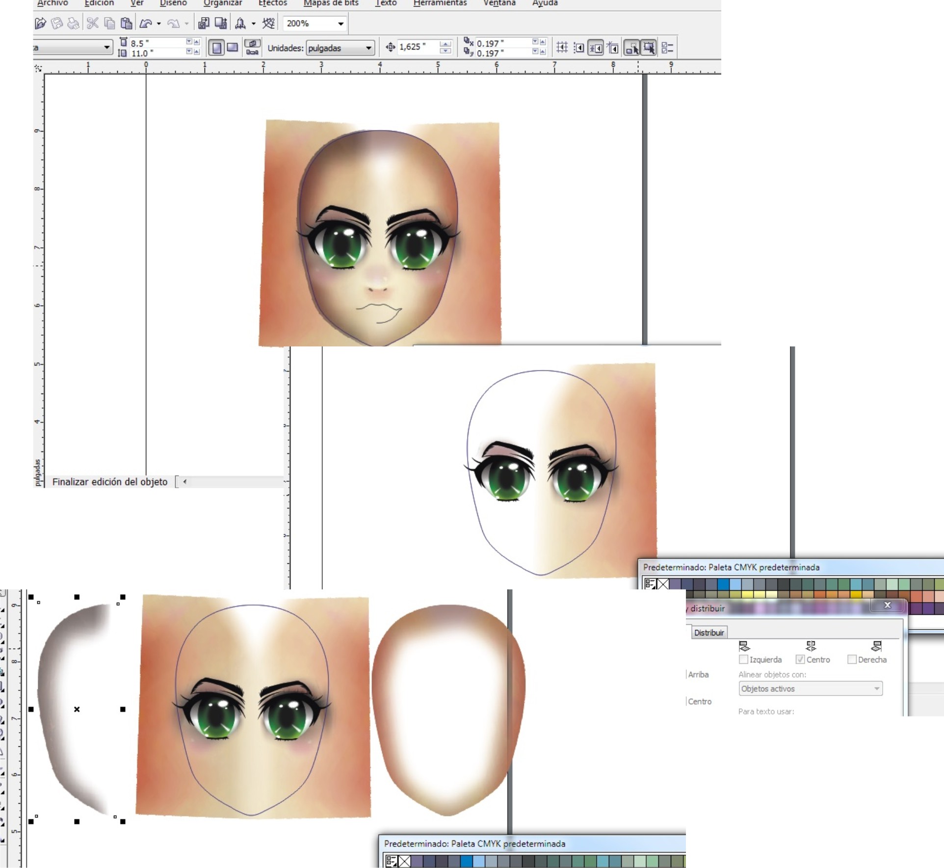 el mismo contorno del rostro hice tonos más oscuros y sombras.