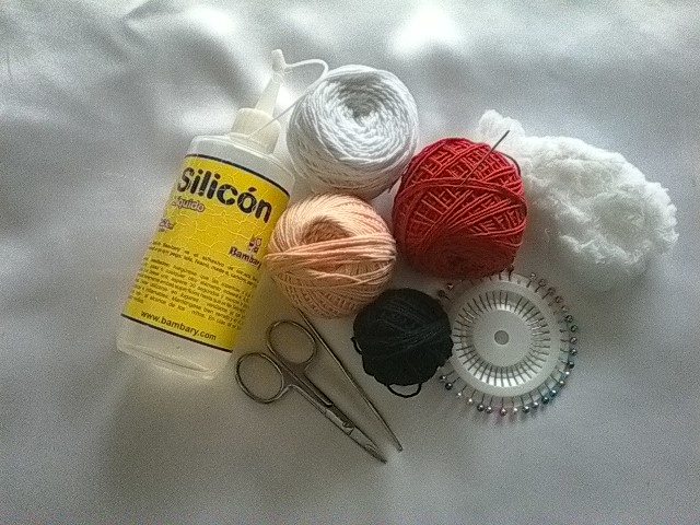 - Hilos de tejer rojo, blanco y negro.