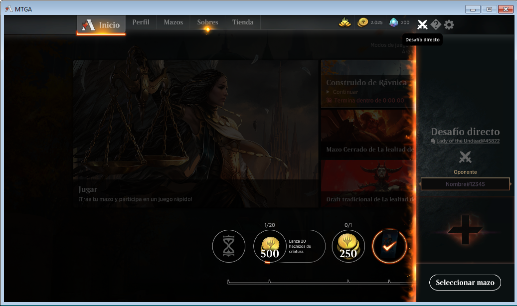 - Si tu o tu oponente aun no saben su MTGA Tag (Nombre#00000) debajo Desafió directo estará solo con un click quedara grabado en portapapeles y lo podrás compartir.