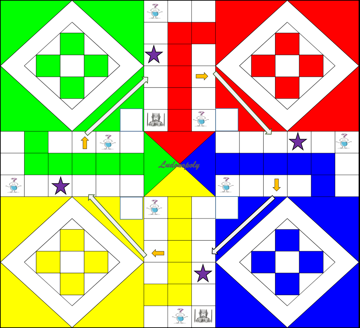 .- La casilla con la estrella morada es zona segura, es decir, allí no te pueden comer, al igual que la salida de cada jugador marcada con su color específico.