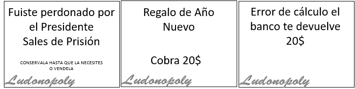 .- Con dicha tarjeta puedes ir o salir de la cárcel, perder un turno, ganar o perder dinero, avanzar 3 casillas.