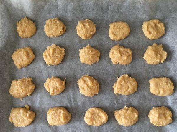 • Posteriormente se colocan bolitas de esta masa sobre una bandeja que ya contenga papel vegetal, mientras tanto se va precalentando el horno a 190 ºC.