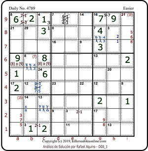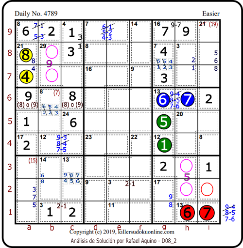 Así va la solución de nuestro Killersudoku. El Diagrama 8_1 muestra como quedó en la ultima entrega.