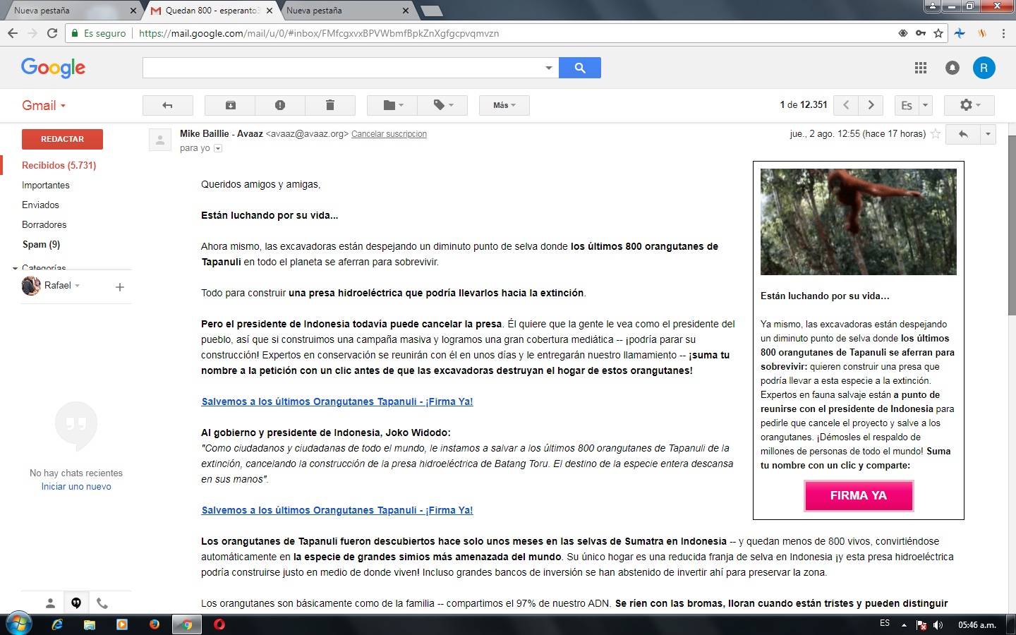 Desde hace algunos años sigo a está organización llamada Avaaz, sus luchas por los derechos de las personas y comunidades me han dado la posibilidad de apoyarlos en luchas para salvar vidas. Humanas y de diferentes seres vivos.