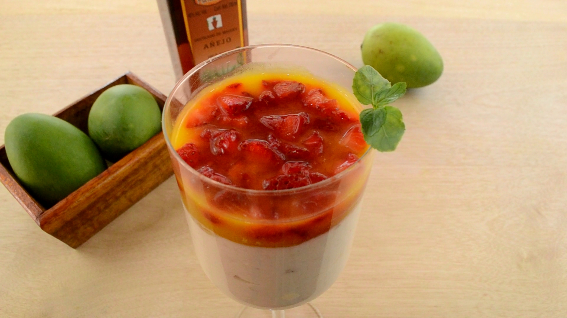 - Puedes preparar en moldes individuales de flan o puedes tambien presentarlo en una copa con salsa de mango y agregar unas fresas para decorar.