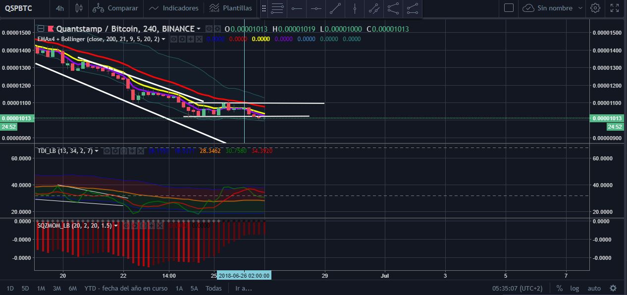 Esta un canal lateral, en un precio de 0.00001020 hasta un techo de 0.00001094, puede ser que el canal rompa a la baja.