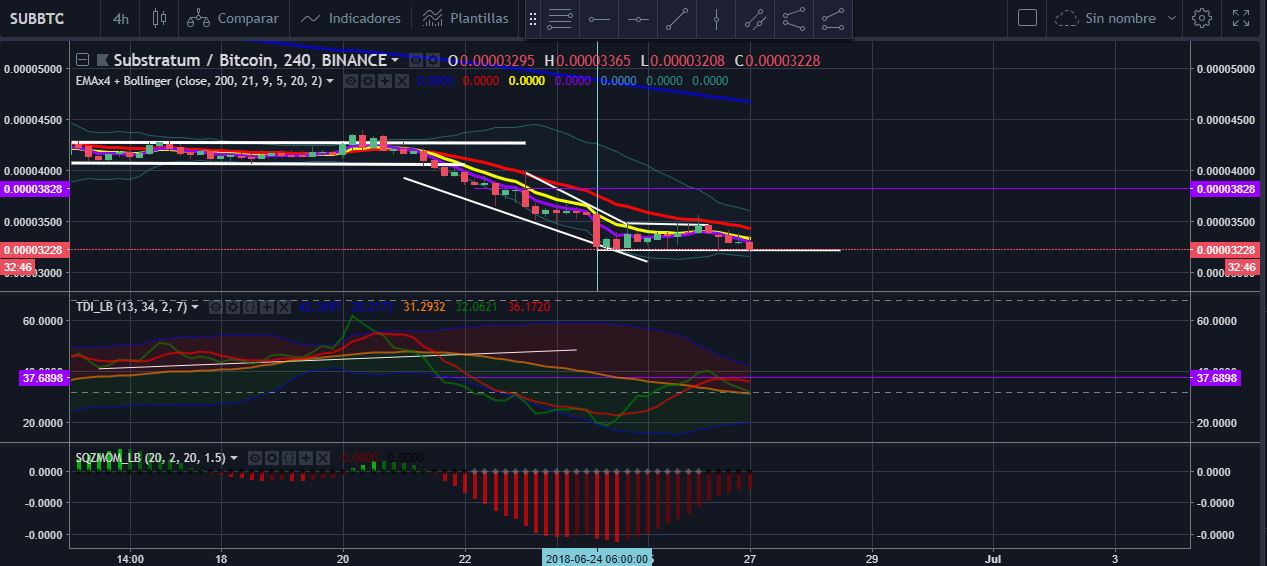 Sub esta en una etapa lateral con un soporte en un precio de 0.000032