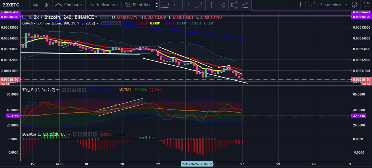 0x esta en un canal bajista, que el precio rebota dentro del canal ente 2% a 3%.