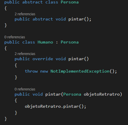 Ahora tras esta simple reducción nuestro artista puede pintar lo que quiera solo extendiendo de la clase principal; note ce que en C# la palabra extends es ":"