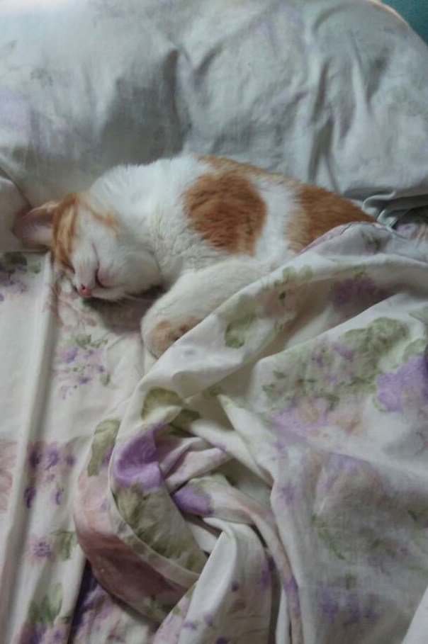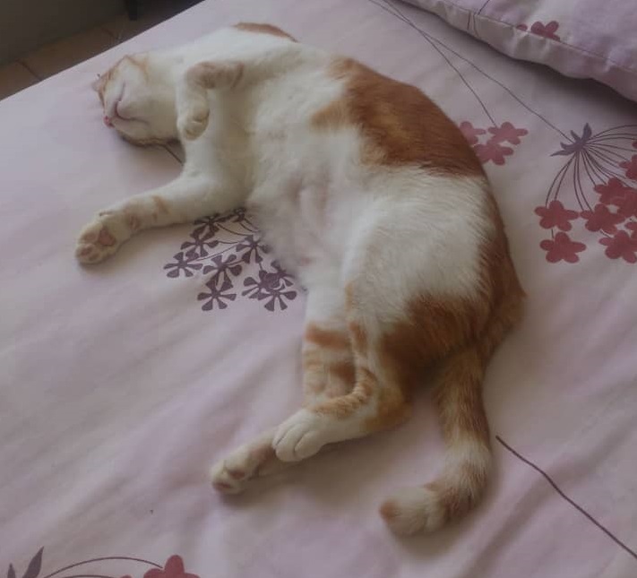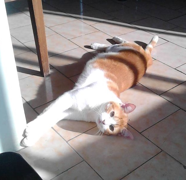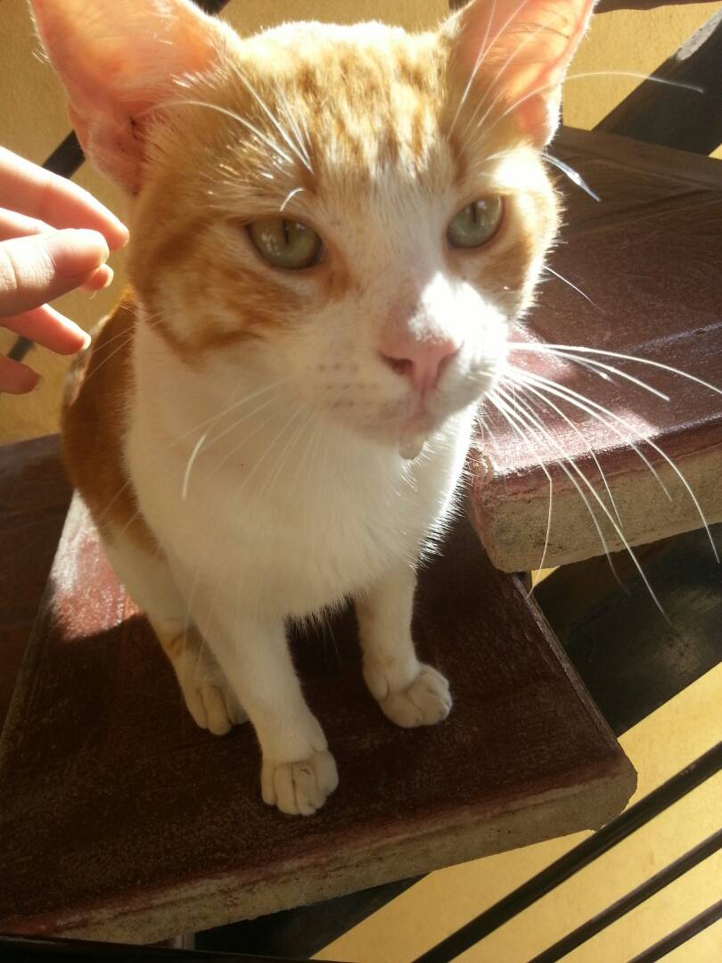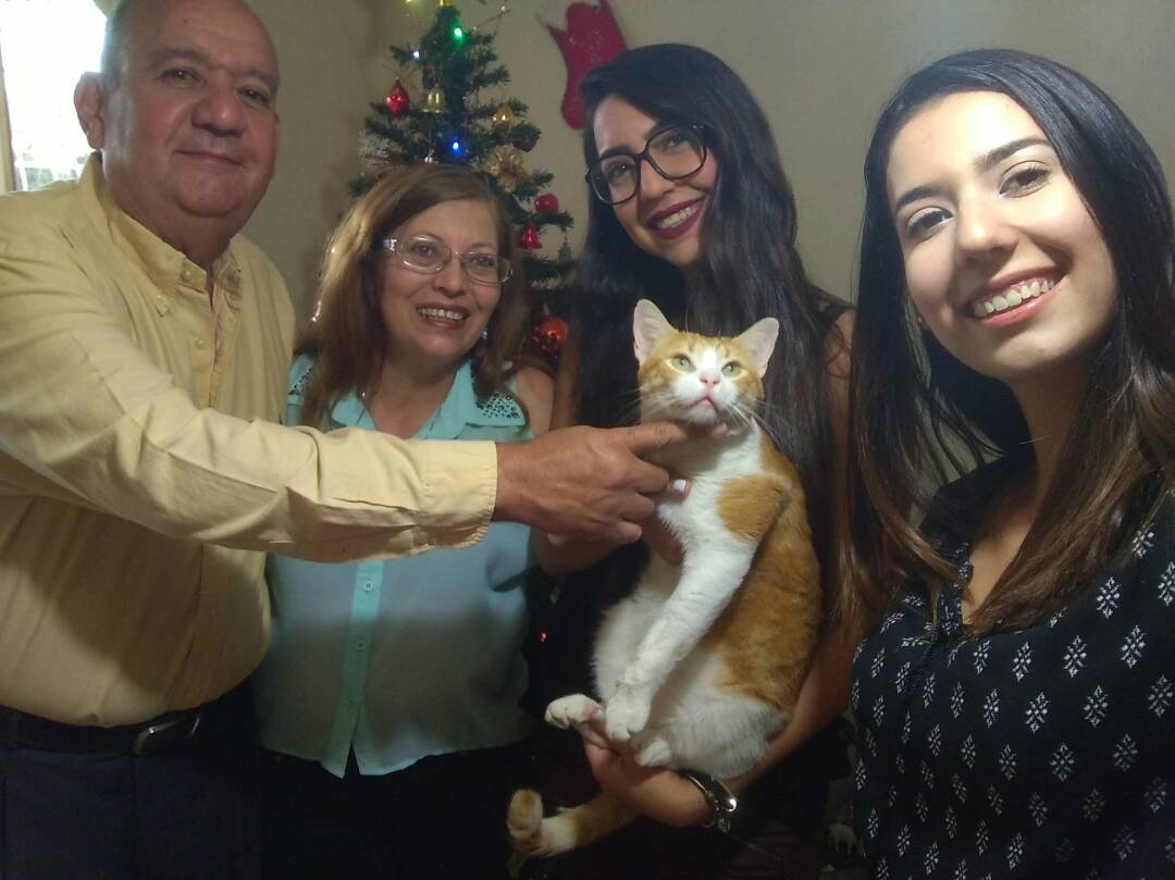 Hace 2 años mi hermana lo consiguió en la calle, y eran tan lindo que no se resistió a hacerle cariño, siguió caminando pero él la siguió hasta su conjunto residencial. Ella no podía llevárselo a casa porque tenía 2 perritos que odian a los gatos, pero desde ese día le daba comida y agua todos los días, a cambio de toda la dulzura que él le brindaba cuando ella salía de su casa.