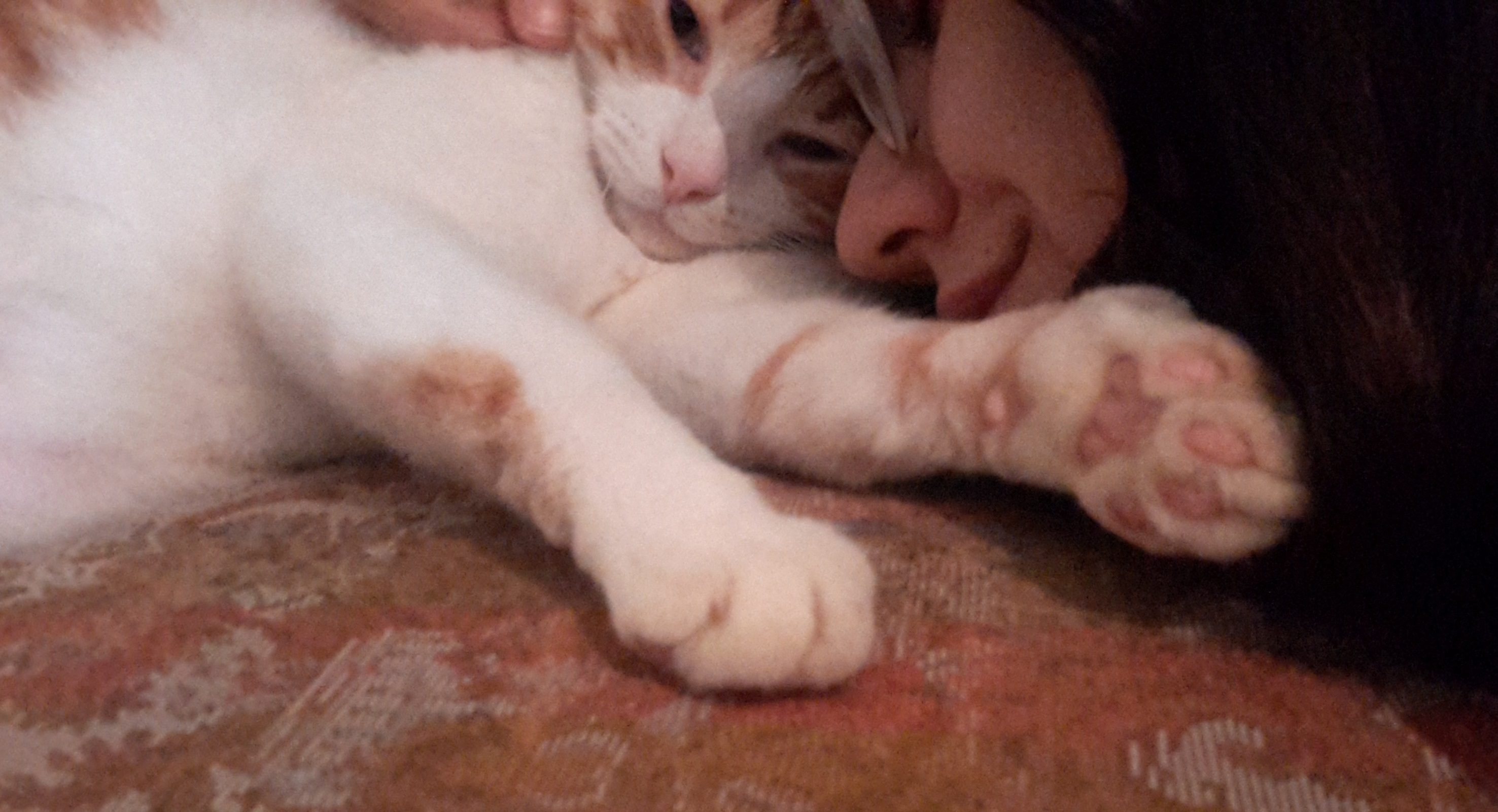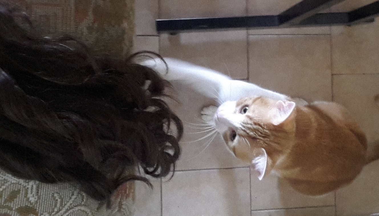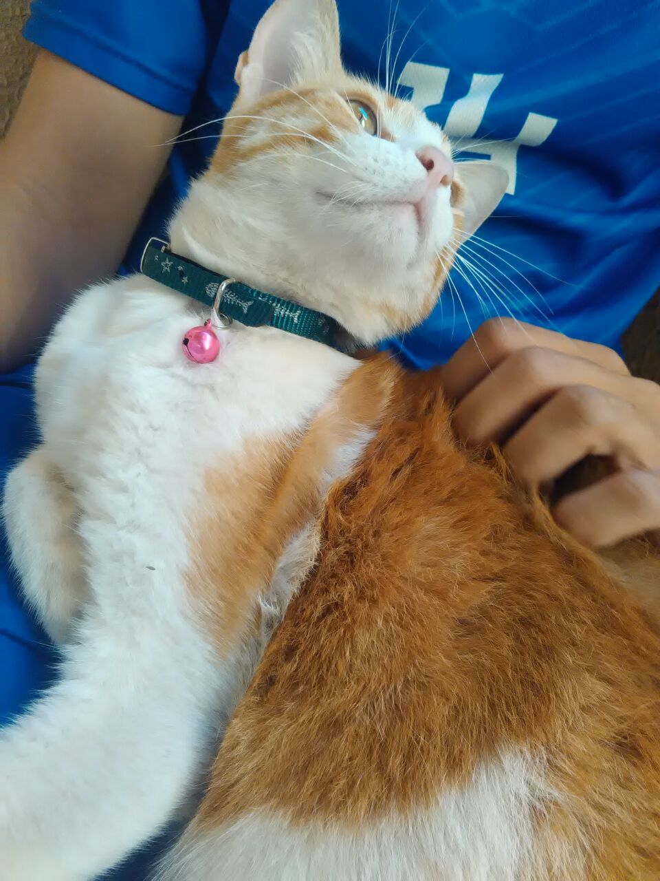 Hace 2 años mi hermana lo consiguió en la calle, y eran tan lindo que no se resistió a hacerle cariño, siguió caminando pero él la siguió hasta su conjunto residencial. Ella no podía llevárselo a casa porque tenía 2 perritos que odian a los gatos, pero desde ese día le daba comida y agua todos los días, a cambio de toda la dulzura que él le brindaba cuando ella salía de su casa.