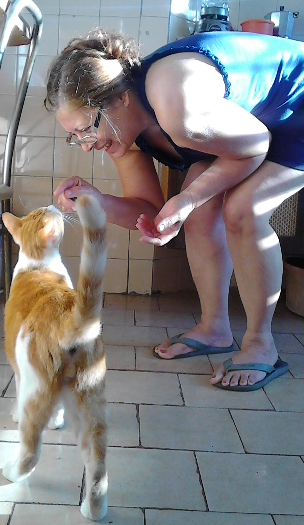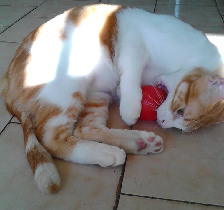 Desde ese momento el estacionamiento fue su nuevo hogar, siempre esperaba en las escaleras a que ella llegara para correr a saludarla con su ronroneo. Le gustaba jugar en el jardín y también compartía juegos con su amigo Kiwi.