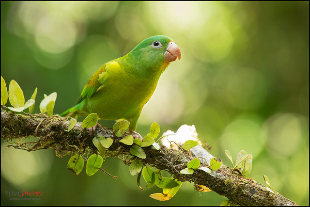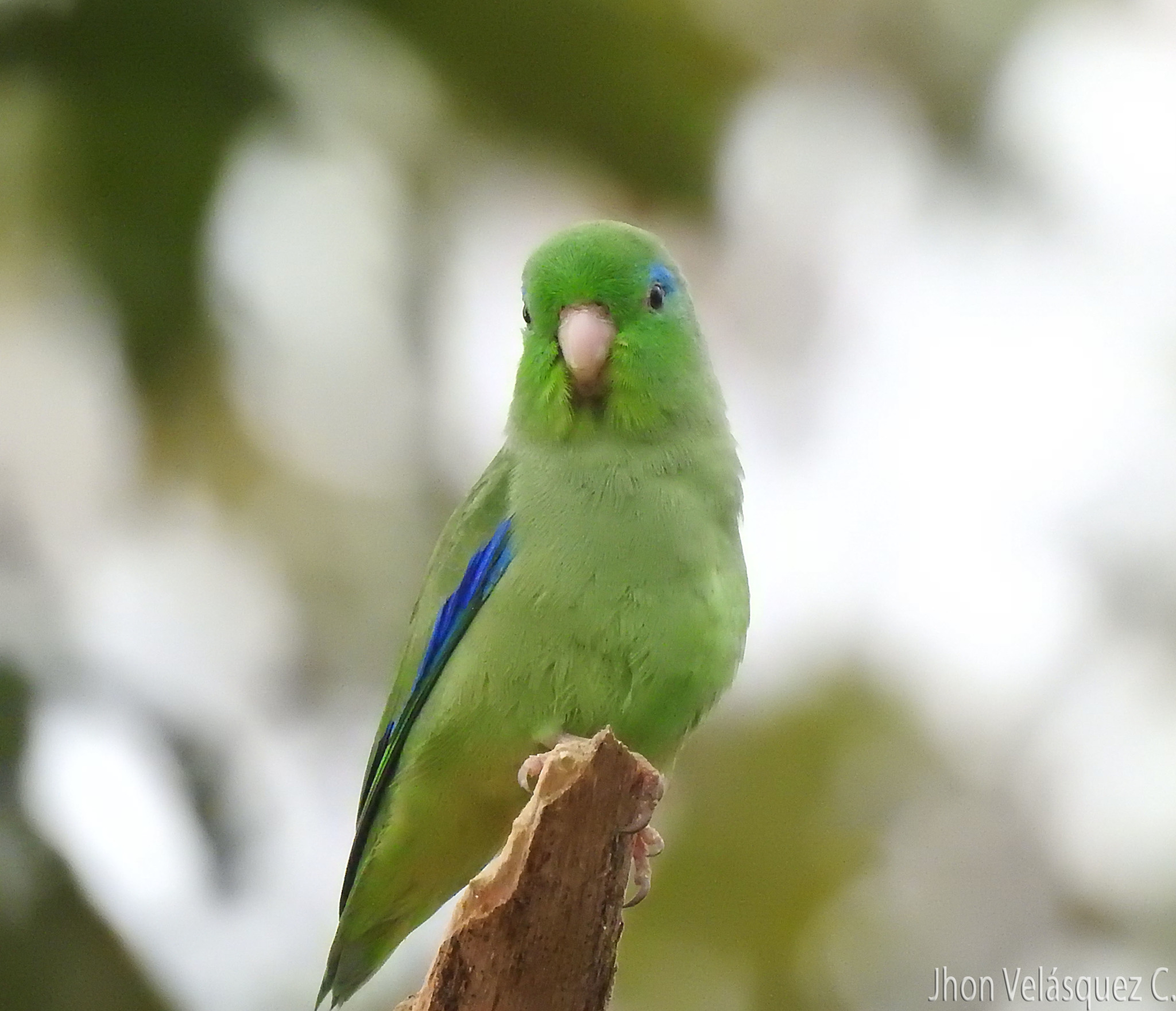 Es una especie de ave muy peculiar de regiones calientes de Sudamérica que viven en matorrales o montes abiertos, son loros muy pequeños llegando a pesar unos 22 gramos y medir unos 12 cm de largo. Son color verde claro de cola mu corta y pico rosado. La diferencia entre la hembra y el macho es mínima ya que la hembra en su cabeza presenta una tonalidad de color amarillo y el macho una mancha azul brillante en sus alas.