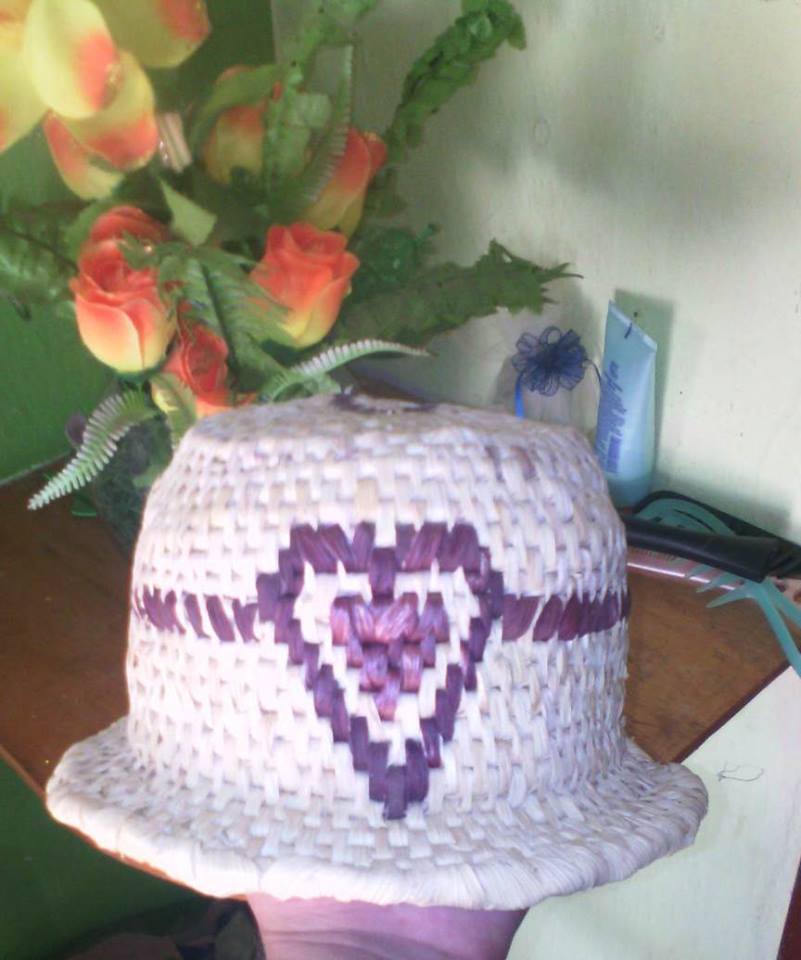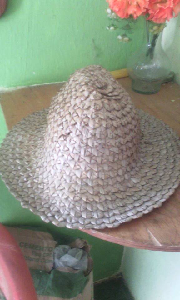 Este lindo sombrero es hecho con hoja de palma en forma de tejido, lo uso para resguardarme del sol .
