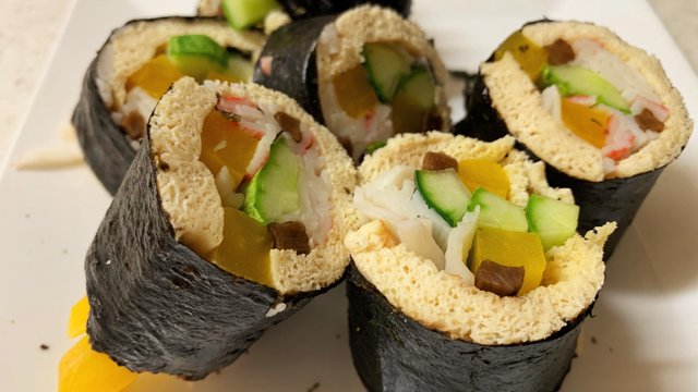 20220505 | 따라쟁이 김밥firas98 (27)in #special • 4 years ago 를 먹어보고 아이디어를 얻어 김밥 만들기 시도. 재료와 칼로리는 아래와 같으며, 총 왕김밥 세 개 말았고 먹을만 했고 두 사람이 먹으면 좋을 분량이었음 #asian #food