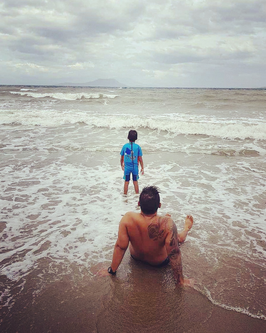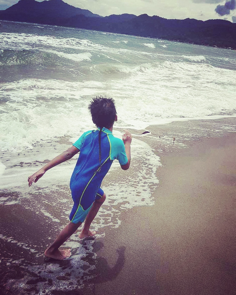 I cooked some Chicken Adobo the night before. Wife and I woke up at 5pm to cook rice, fry some hotdogs, and pack up some stuff. Kids were finally loaded in the van after an hour and half and we reached the small coastal town at 9am. I didn't expect the waves to be huge, because I took a motorcycle ride to do an ocular on the area a few weeks ago, and it was calm. Good thing is they have a pool so the kids still enjoyed nonetheless.