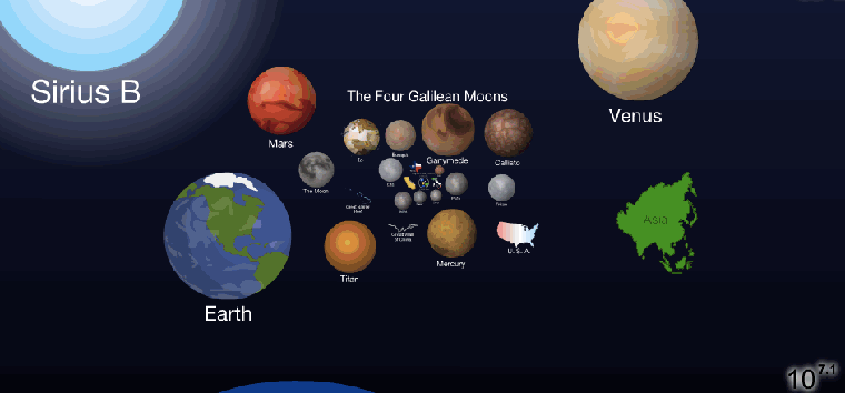 If you scroll up, you basically zoom out of a body - to city, then sky view of the city, then planet, then universe.