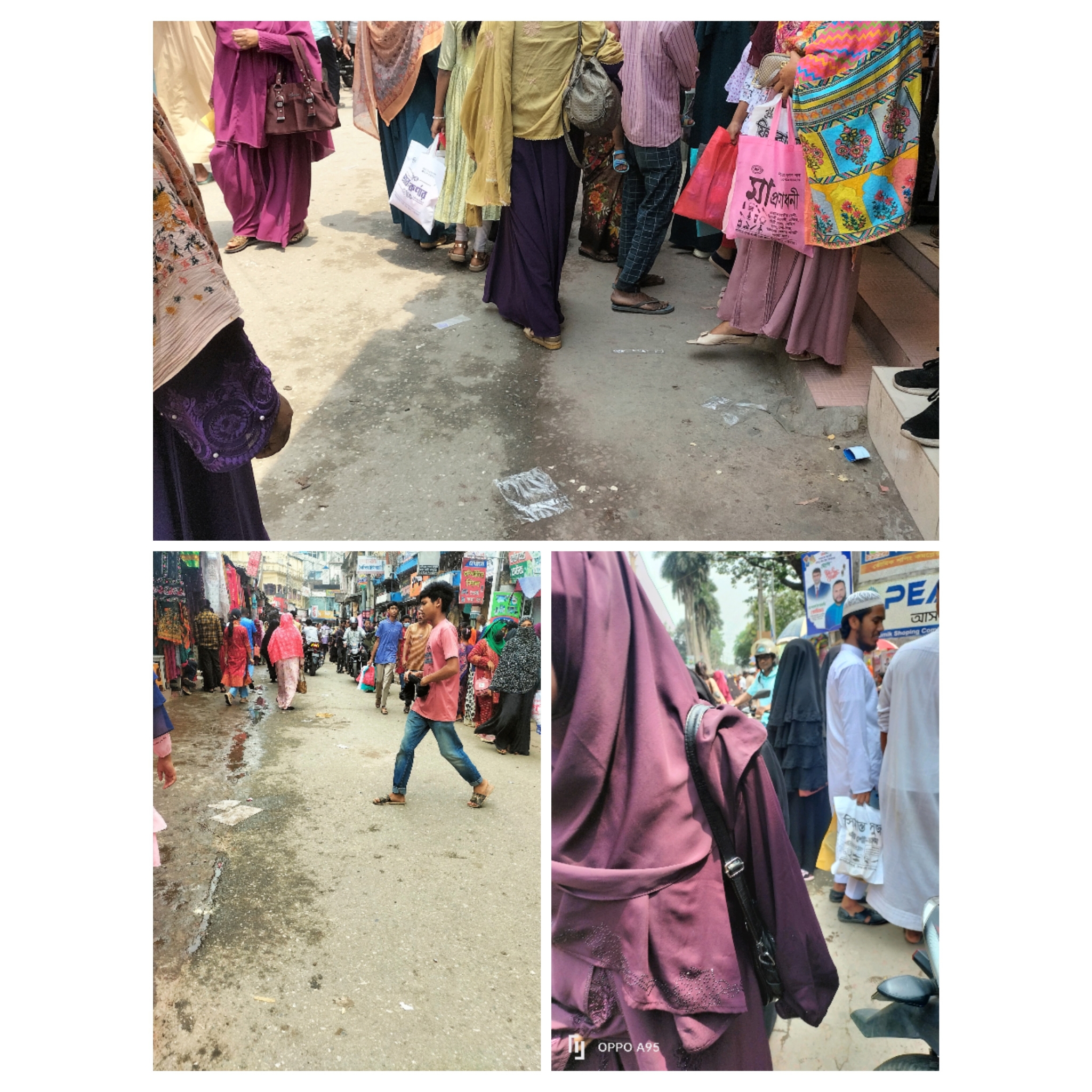 ৫তারিখে গাইবান্ধা যাওয়ার কথা ছিলো কারণ টেইলার্সে ব্লাউজ ও ড্রোস বানাতে দিয়েছিলাম আর তা ডেলিভারি ডেট ছিলো ৫তারিখে।মেয়ের স্কুুল খোলা ছিলো তাই যেতে পারিনি পাঁচ তারিখ। আজ গাইবান্ধা গিয়েছিলাম। উদ্দেশ্যে অনেক কিছু, সাথে ব্লাউজ ও ড্রেস আনা।সকালে স্নান সেরে রেডি হয়ে রওনা দিলাম একা।প্রচন্ড গরম তাই মেয়েকে রেখেই চলে গেলাম একা।মেয়ে ও আজ যেতে চাইছিলো না কারণ অনেক দিন পর খেলার সুযোগ পেয়েছে স্কুল বন্ধের কারনে।আমি একা গেলাম।গিয়ে দেখলাম মার্কেটের সব রাস্তা বন্ধ করে দিয়েছে রিক্সা ও অটো, মোটর সাইকেল যাতে ঢুকতে না পারে।দেখে ভালোই লাগলো কারণ নিশ্চিন্তে রাস্তা দিয়ে চলাফেরা করা যাচ্ছে। তবে রাস্তায় মানুষের ঢল।সবাই শপিং করতে ছুটেছে। হেটে হেটে ক্লান্ত লাগছিলো কারণ রিক্সা পেতে গেলে নিদিষ্ট কোথাও যেতে হয়েছিলো।