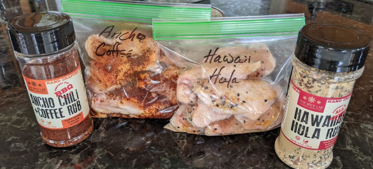 Two batches of the wings I'm going to be making are done with flavors available over at The Spice Lab. They provide a ton of great flavors to make a variety of wings just by marinating with a pre-built seasoning. The 3rd batch is a home spun sweet Asian style wing.