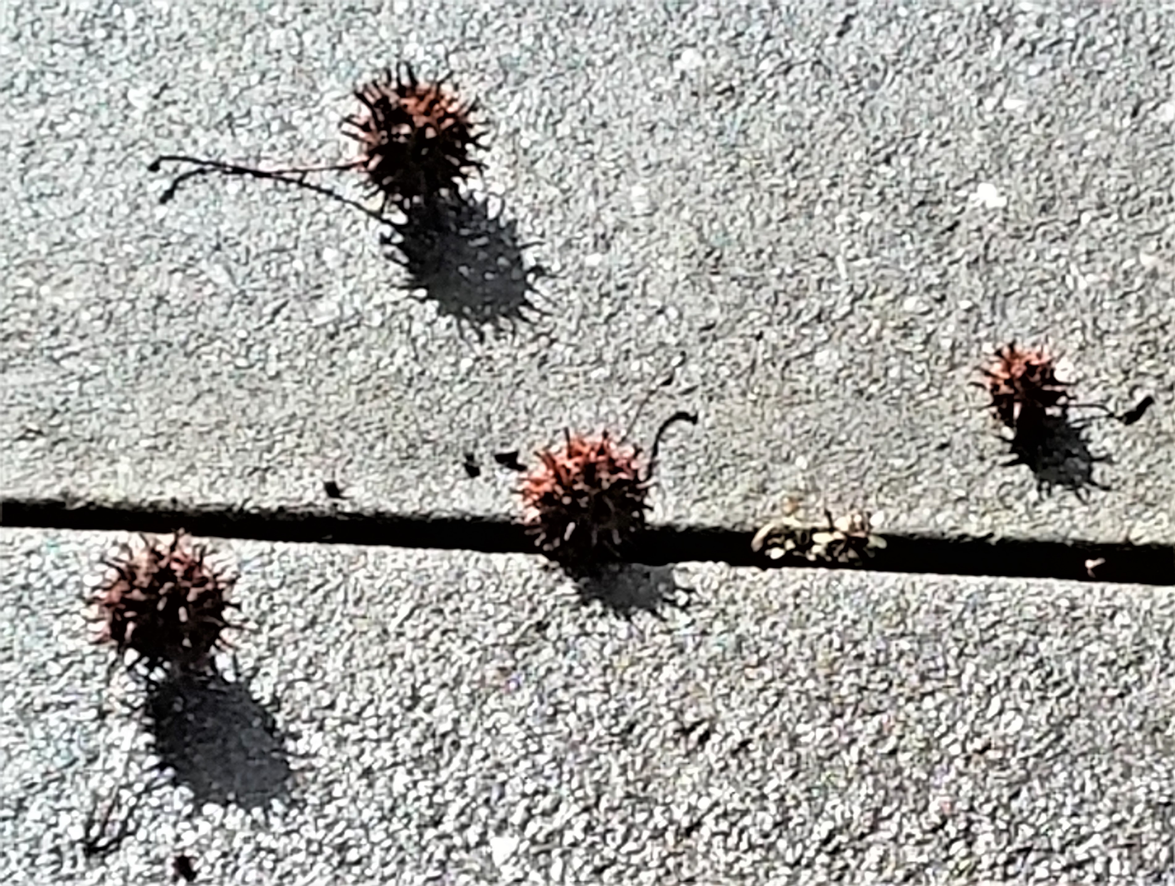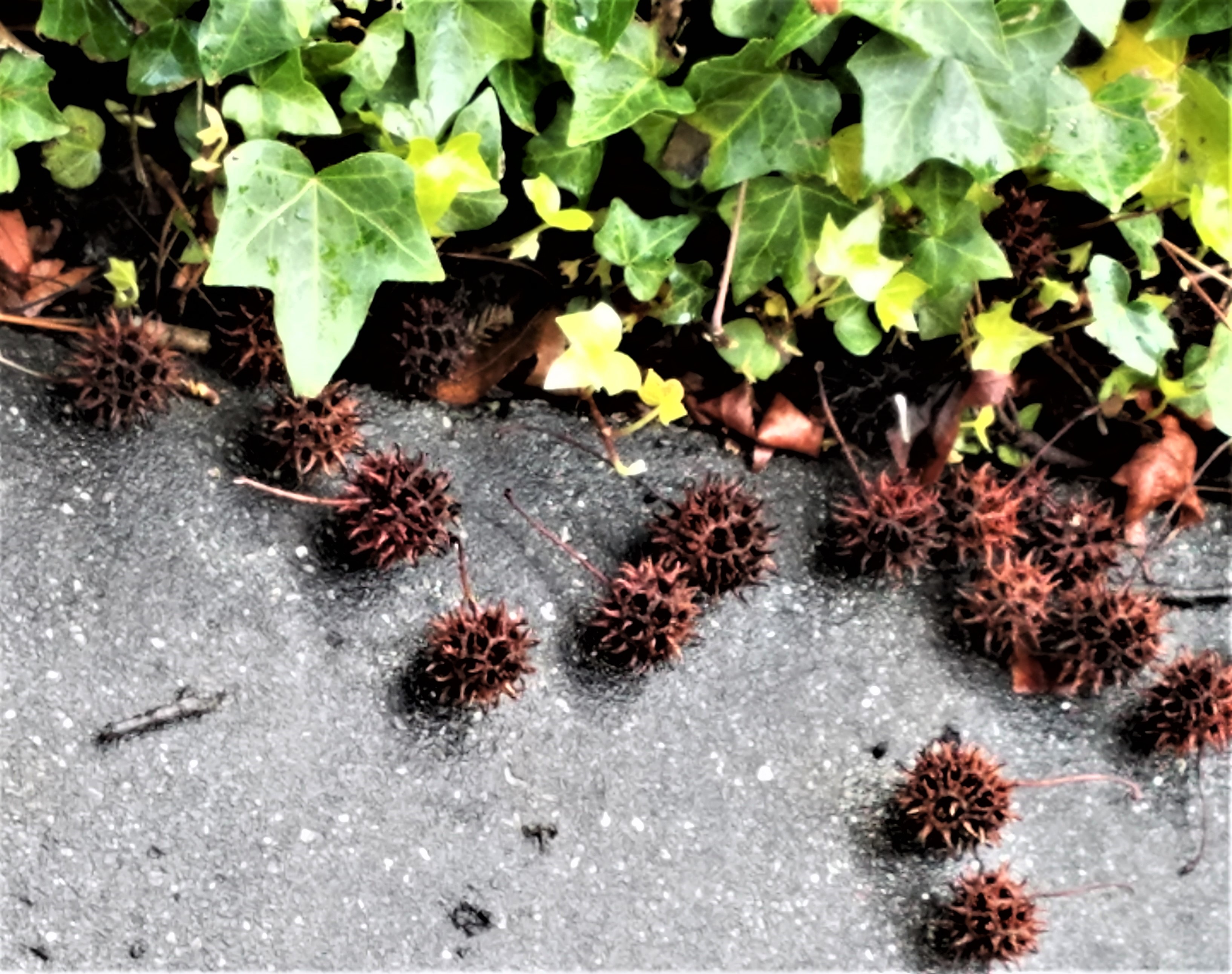 Sweet SpikessteemCreated with Sketch.thatindianlady (70)in #spikes • 7 years ago Have you ever met these spiked horrors? They are seed balls from a sweet gum tree. The leaves are pretty and resemble those of a maple, but the balls look more like medieval maces. They must be difficult to clean up.