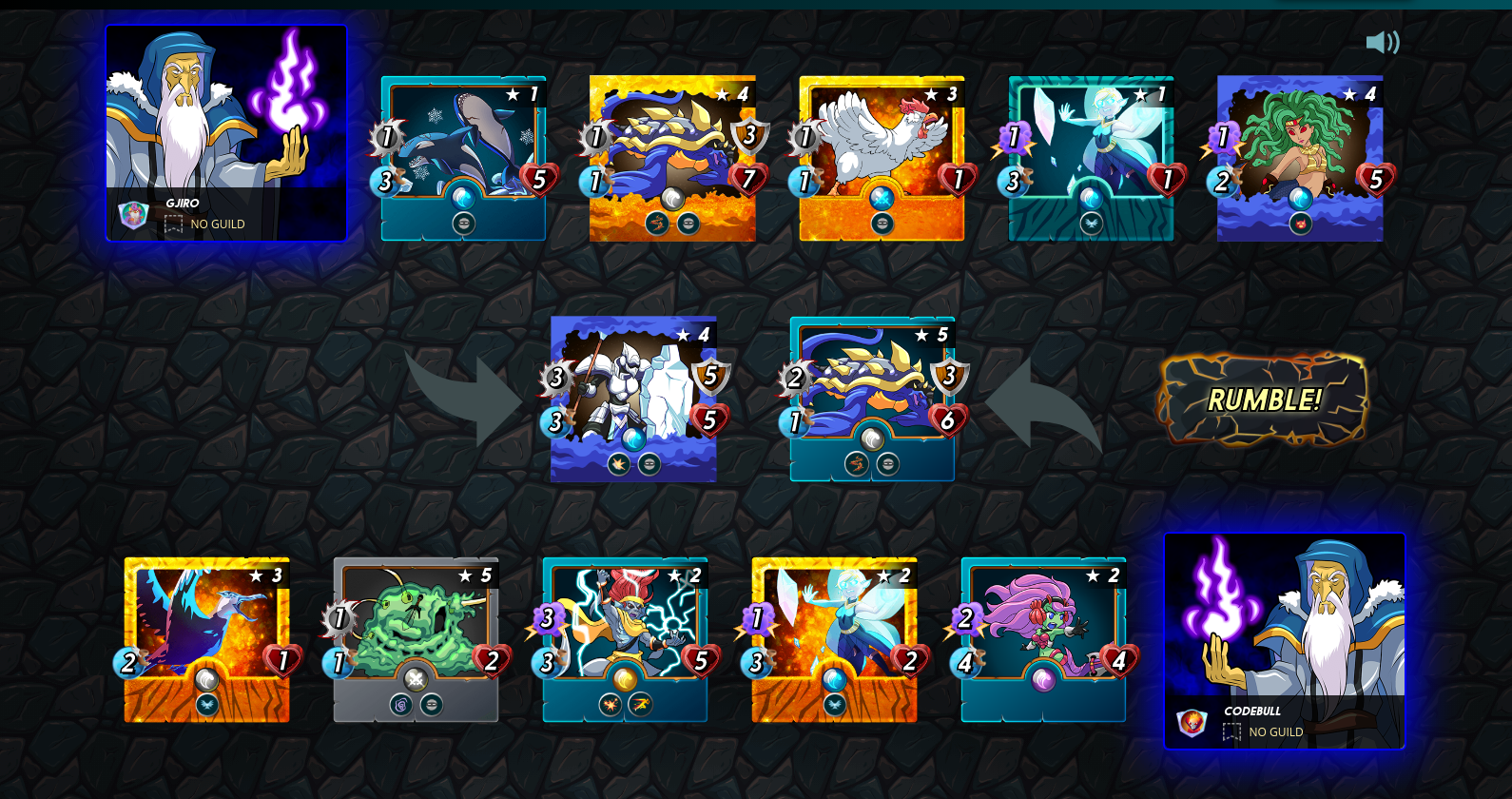 | Alric Stormbringer (Lvl 4), Spineback Turtle (Lvl 5), Mischievous Mermaid (Lvl 2), Ice Pixie (Lvl 2), Ruler of the Seas (Lvl 2), Creeping Ooze (Lvl 5), Albatross (Lvl 3) | Win View | Alric Stormbringer (Lvl 4), Frozen Soldier (Lvl 4), Battle Orca (Lvl 1), Spineback Turtle (Lvl 4), Furious Chicken (Lvl 3), Ice Pixie (Lvl 1), Medusa (Lvl 4) |