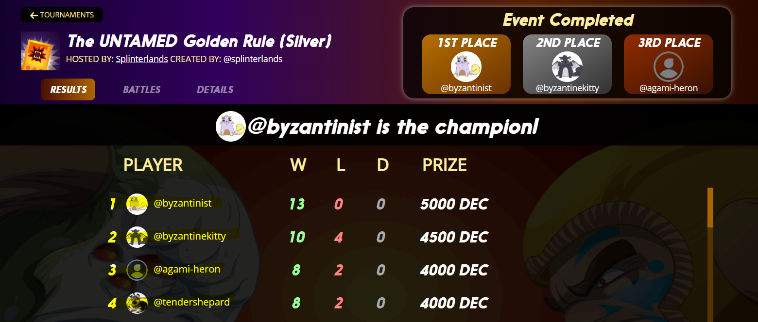 It's ok if the steemmonsters-crew will be at first position in a tournament - why not - but not on the places 1-4.