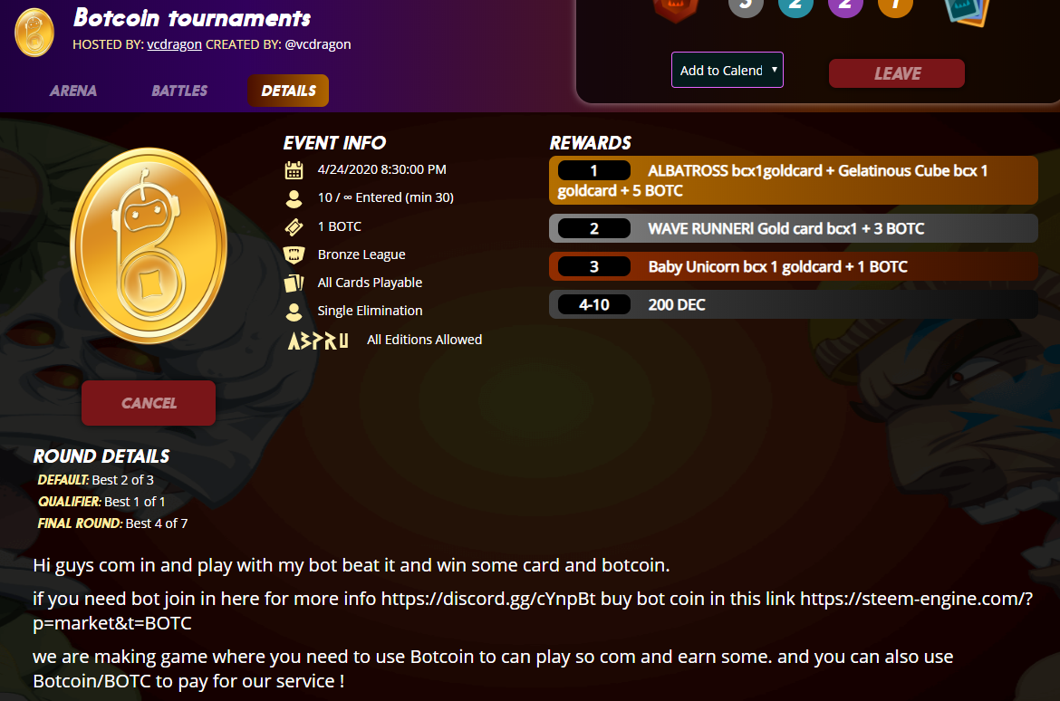 we also runing splinterlands tournaments where you can win botcoin and splinterlands card !