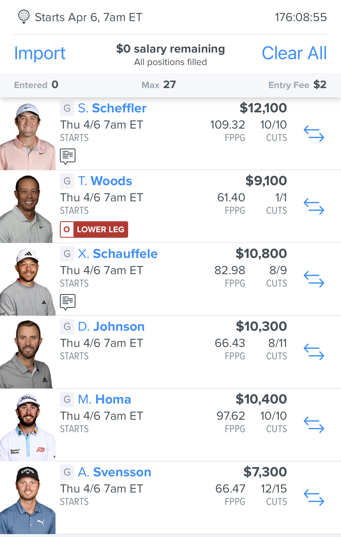 I am adding to the fun by playing a fanduel fantasy game… here is my team: