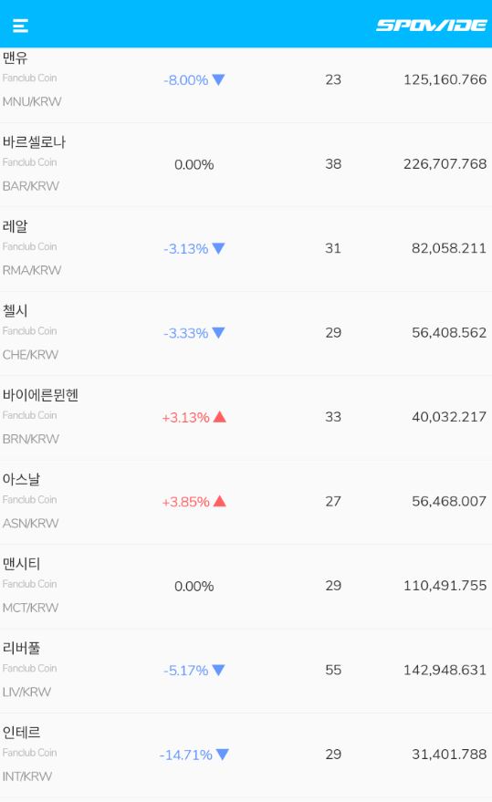 스포와이드에 있는 팬클럽 코인은 14종이 있습니다.