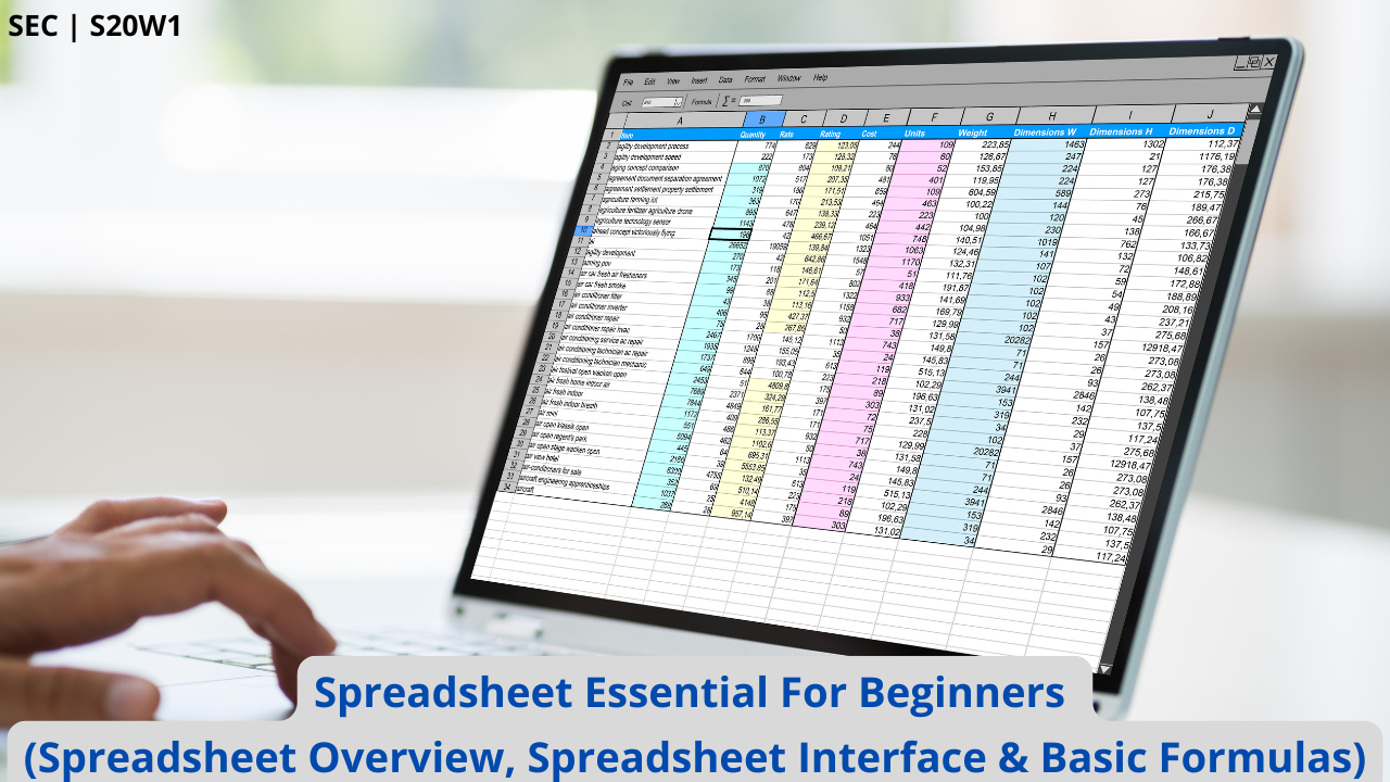 SEC | S20W1 | Spreadsheet Essential For Beginners (Spreadsheet Overview, Spreadsheet Interface & Basic Formulas)