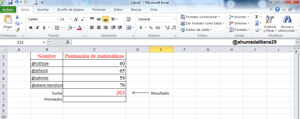 Luego de tener la función bien especificada, tan solo debemos oprimir el botón "Enter" y veremos que automáticamente se realizara la sumatoria y podremos visualizar el resultado de la sumatoria que corresponde a 263.