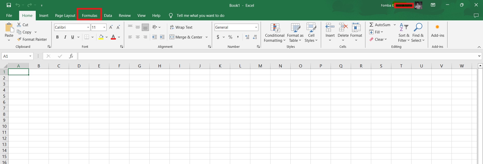On the menu, you click formulas, next after the page layout tab.