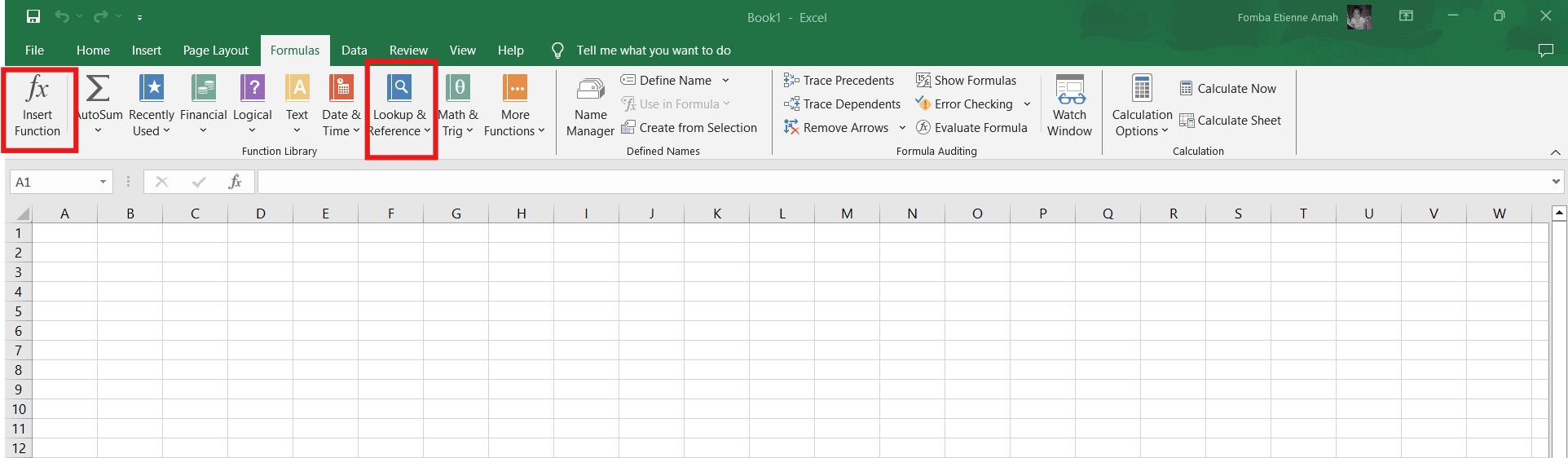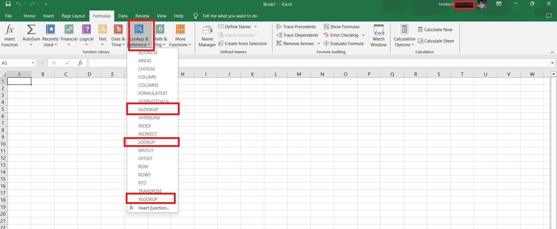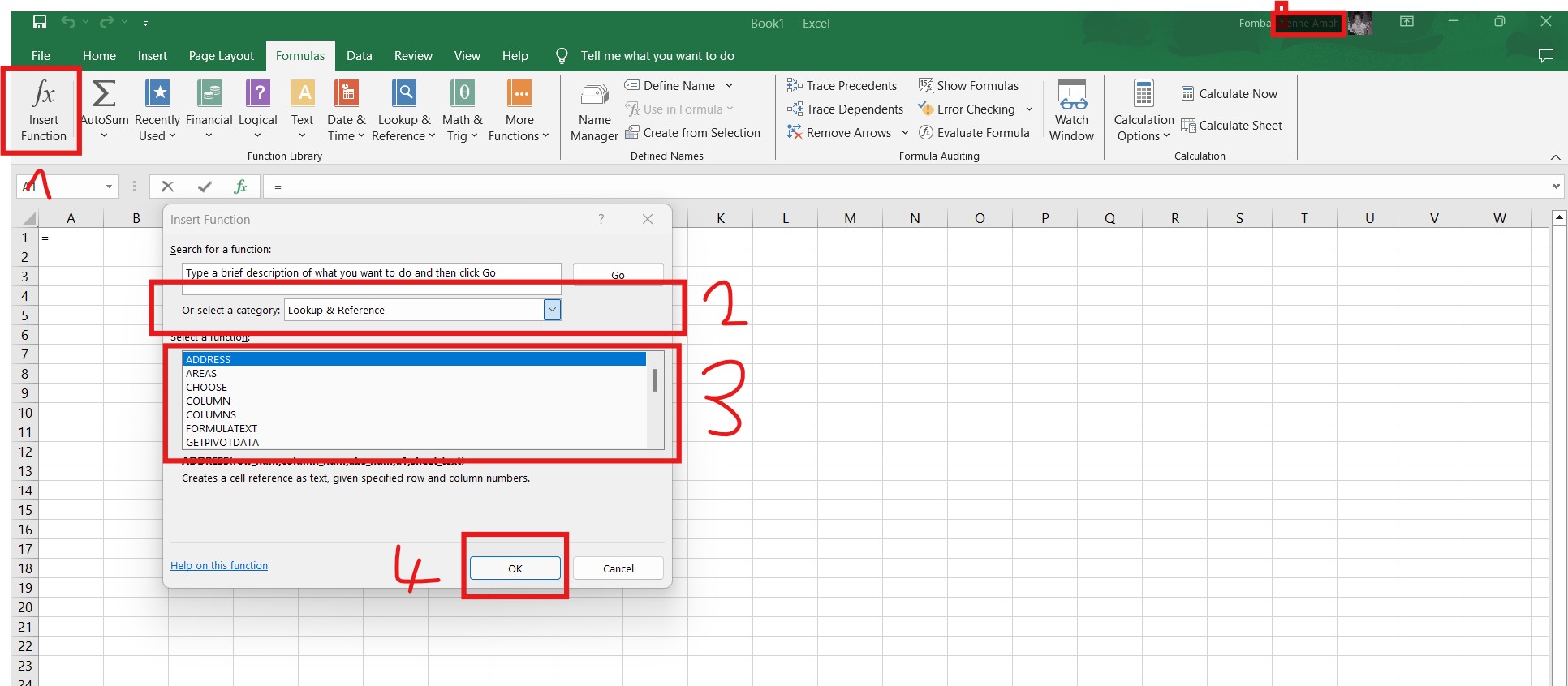 Click Insert functions, a longer process, or click Lookup & references.