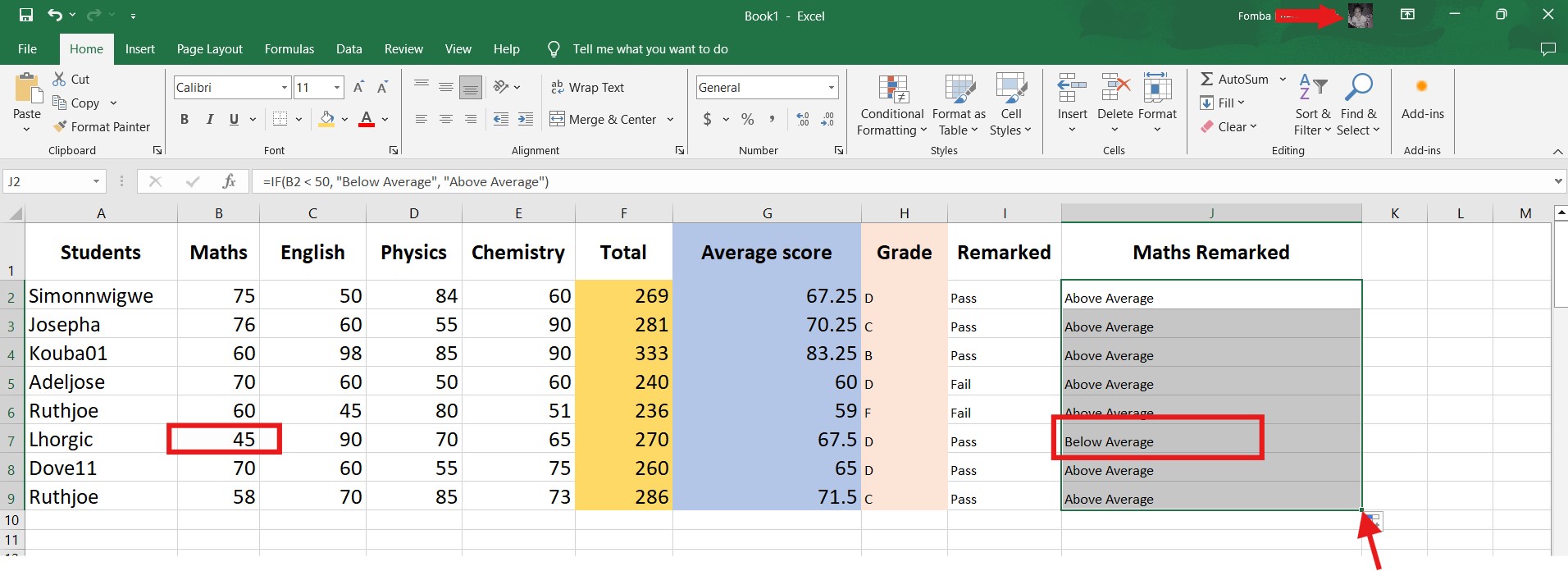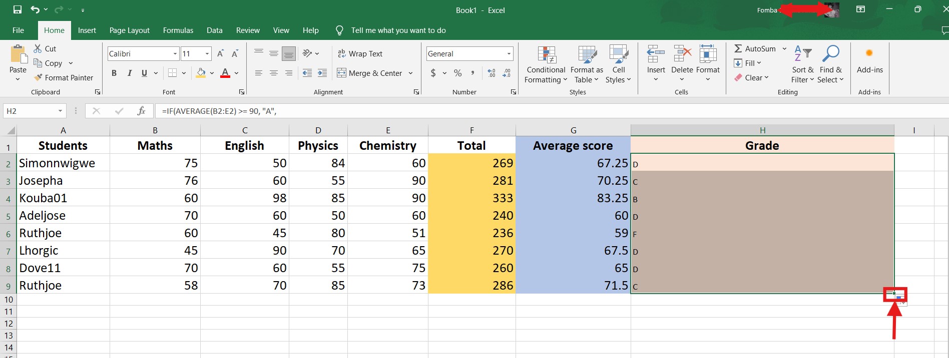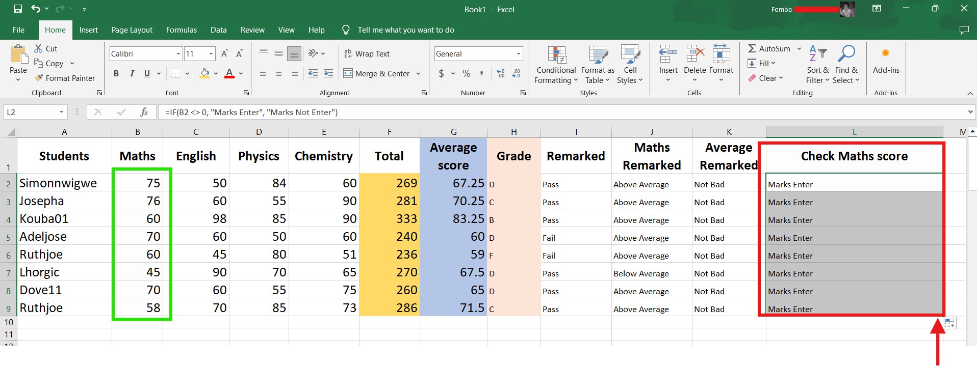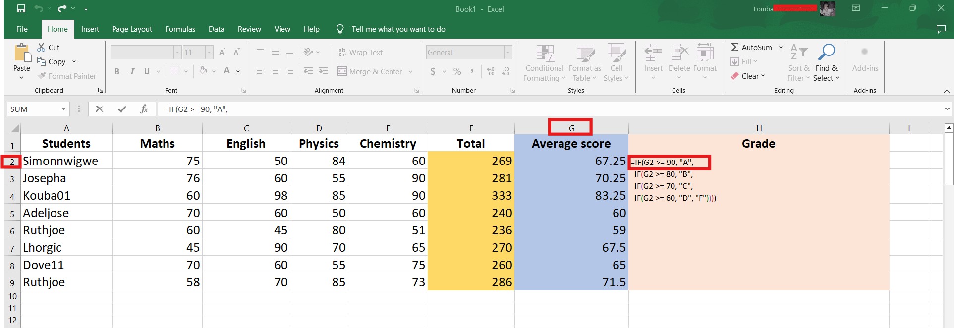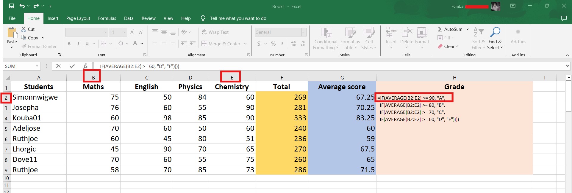 I will have more than one IF function separated by a comma, and each will check if the average score is greater than or equal to an assigned value. Then the grade will be outputted.