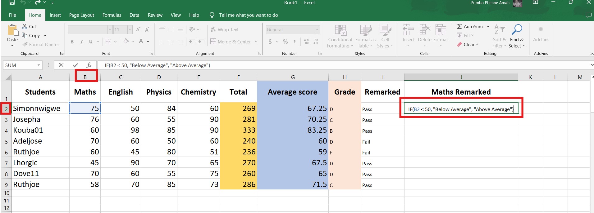 Calculating the grade required us to check if the value is true or false to give a specific grade. For this reason, a logical function is needed for me to be able to achieve a more efficient and accurate grade for each student. So we will make use of logical operators like >, <, =, >=, <=, or <> in our if statement based on the average score of each student.