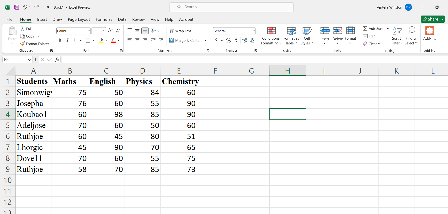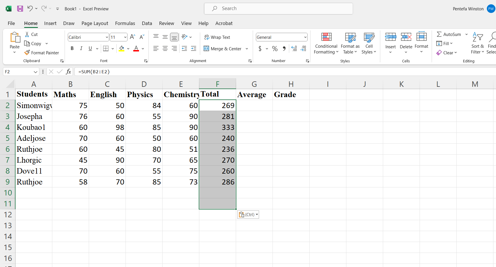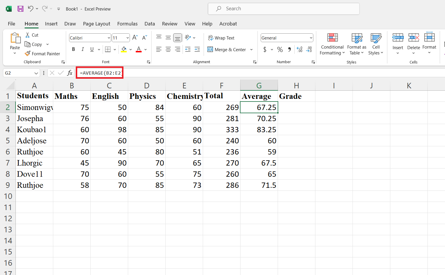 Next step we proceed to add the cells for the total average and Grade of these students.