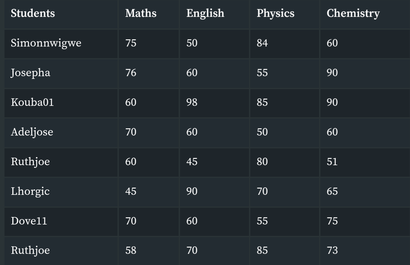 Write the IF Function formula to calculate the total, average score, and grade of students given in the table below._____